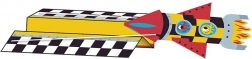- 10 feuilles de papier illustrées (pour 5 fusées), 1 lanceur, 1 élastique