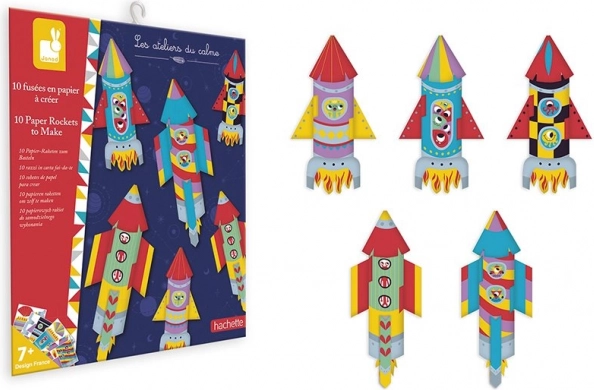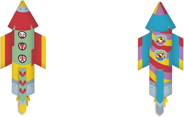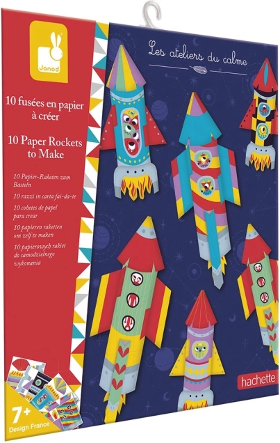 Le kit comprend 10 feuilles pour plier jusqu’à 5 fusées originales aux motifs colorés qui attirent le regard dès le premier coup d’œil.