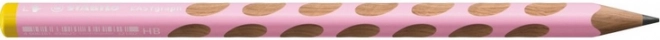 Le crayon ergonomique STABILO EASYgraph pour gauchers en rose clair aide les enfants à adopter une prise correcte et à écrire de manière confortable et détendue. Grâce à sa forme triangulaire et à ses zones antidérapantes, il guide intuitivement les doigts, tandis que l’extrémité jaune indique clairement la version pour la main gauche.