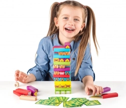 Cette tour colorée avec des animaux ravira chaque enfant avec ses couleurs vives et ses motifs ludiques. Elle est fabriquée en bois de qualité et propose différentes façons de jouer - de l'empilement simple jusqu'à des jeux stratégiques avec dés et cartes. Le jeu permet de développer la réflexion stratégique et offre du plaisir pour toute la famille.