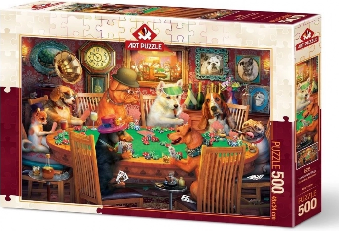 Profitez d’un divertissement de qualité avec un motif captivant de chiens autour d’un jeu de cartes. Ce puzzle de 500 pièces est un excellent choix pour une après-midi de relaxation, l’entraînement de la patience et le développement de l’attention. Une fois terminé, vous obtiendrez une image décorative parfaite pour l’encadrement.