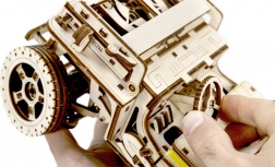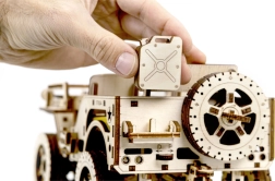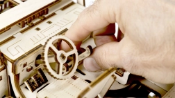 Chaque pièce du modèle, mesurant environ 27,9 × 15,1 × 14,8 cm une fois assemblé, est découpée au laser pour un montage précis et fluide. À la fin, appliquez de la cire pour assurer la douceur de fonctionnement des engrenages et des essieux. L’assemblage nécessite un cutter, des ciseaux, du papier abrasif et une bougie (équipement non inclus dans l’emballage).