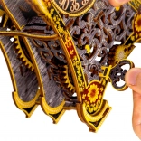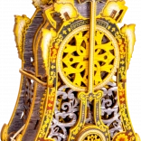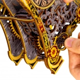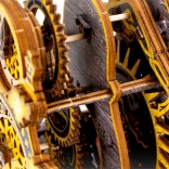 Le modèle est fabriqué en contreplaqué de bouleau écologique et s’assemble sans colle ni outils. Pendant l’assemblage, vous découvrirez de près les principes des transmissions, des moteurs à élastique et du mécanisme d’horlogerie.