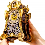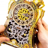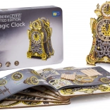 L’horloge magique est à la fois une histoire et une science. Une fois assemblée, elle s’anime grâce au mouvement des engrenages et à l’allure régulière du pendule. Deux cadrans – pour les heures et les minutes – permettent de suivre le temps ainsi que la mécanique fascinante. L’édition limitée, avec ses gravures délicates et son impression UV en couleurs, se distingue dans tout intérieur et évoque l’atmosphère des contes classiques.