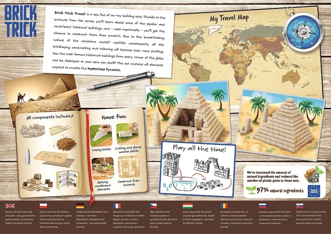 Avec Trefl Brick Trick, vous pouvez découvrir le monde des monuments célèbres depuis le confort de votre maison. La pyramide est fabriquée à partir de matériaux écologiques, ce qui en fait un choix sûr et adapté aux enfants qui souhaitent s’initier à la construction avec de vraies briques.
