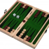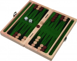 Le coffret contient deux jeux de pions en bois et une paire de dés – tout ce qu’il faut pour commencer immédiatement une partie de backgammon.