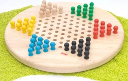 Jeu stratégique classique Halma (Dames chinoises) de GOKI pour au moins deux joueurs. L’objectif est d’amener tous vos pions le plus rapidement possible dans le coin opposé grâce à des mouvements astucieux et des sauts. L’ensemble comprend un plateau Ø 29 cm, 60 pions en six couleurs et une notice – un divertissement sûr et de qualité pour toute la famille.