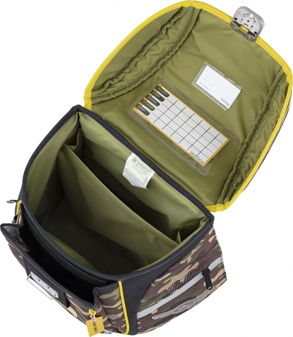 Sac résistant au style militaire avec fermeture facile. Adapté pour l'école, le sport et les loisirs.