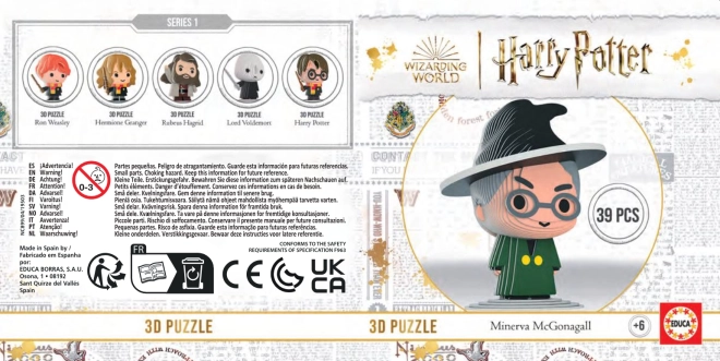 Assemblez l’emblématique professeure Minerva McGonagall du monde magique de HARRY POTTER. Ce puzzle 3D de collection propose 39 pièces, un assemblage sans colle et des couches en carton prédécoupées et colorées pour une création facile et ludique. Sont inclus également 2 pièces d’un puzzle exclusif de 12 pièces pour les collectionneurs de la série complète.