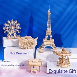Découvrez la magie du savoir-faire traditionnel avec le modèle 3D en bois de carrousel. Ce set offre une expérience complète du début à la fin. Des matériaux de qualité et sûrs garantissent un montage agréable, et le produit fini devient une décoration impressionnante.