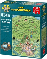 Explorez une scène de pique-nique déjantée, pleine de surprises et d’éléments typiques que les fans de JAN VAN HAASTEREN adorent – la fameuse nageoire de requin, des mains « vagabondes », un dentier, saint Nicolas et même l’autoportrait de l’auteur. Chaque assemblage révèle un nouveau petit gag et garantit que vous vous amuserez encore et encore.