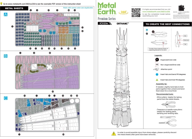 L’assemblage se fait sans colle : les pièces sont détachées des plaques d’acier puis reliées par des verrous, sécurisés en pliant de petites languettes. Pour un travail plus confortable, nous recommandons de petites pinces coupantes et une pince fine (non incluses). La récompense est un chef-d’œuvre réaliste à la silhouette de tour imposante.