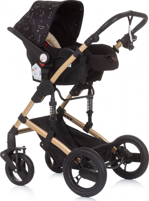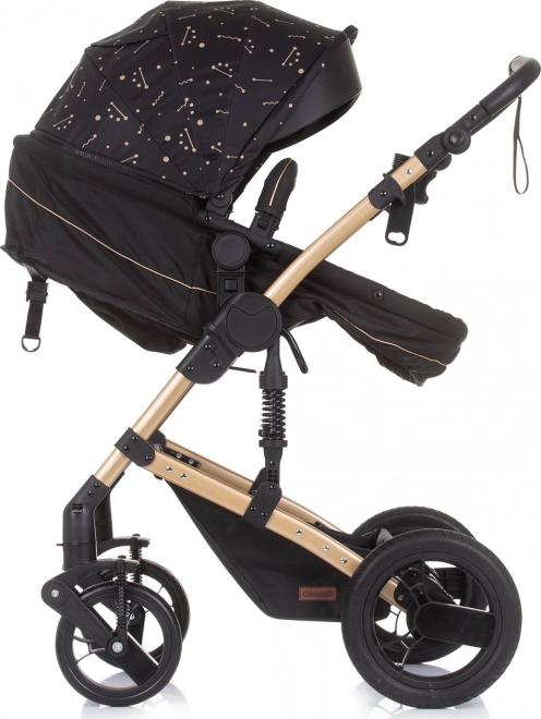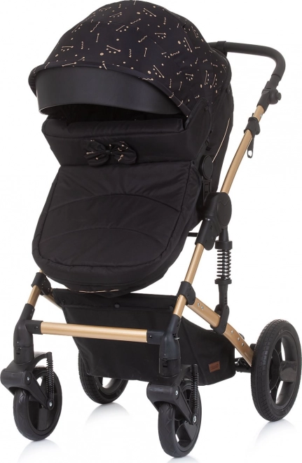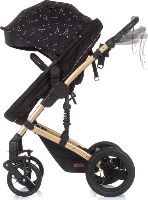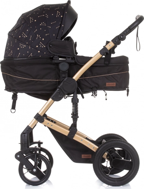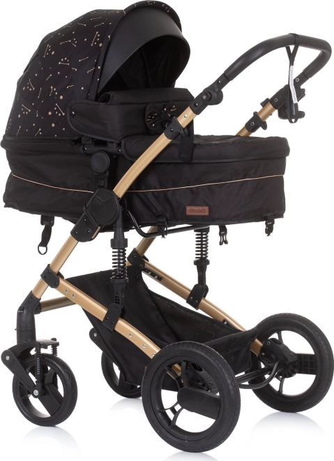 Élégante poussette combinée 2‑en‑1 Camea de CHIPOLINO en finition Ebony, réunissant nacelle et siège sport en un seul produit. Elle offre un châssis léger et robuste avec suspension, un siège réversible face ou dos à la route, un dossier réglable sur 3 positions et de nombreux accessoires incluant sac, porte-bouteille, moustiquaire et couvre-jambes.