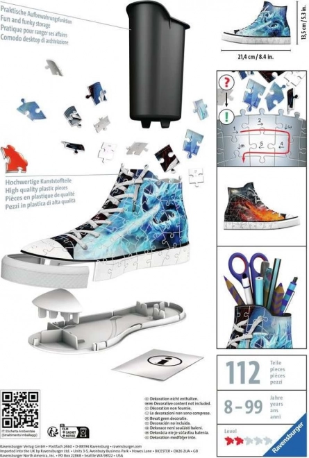 Ce puzzle 3D propose une alliance ingénieuse pour les amoureux des sneakers et des puzzles. Créez une basket au motif cosmique qui décorera votre bureau tout en servant d’organiseur fonctionnel pour stylos, crayons ou pinceaux.
