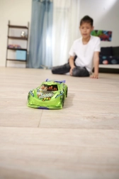 Cette voiture est équipée d’une puissante propulsion par friction, permettant des courses rapides et dynamiques.