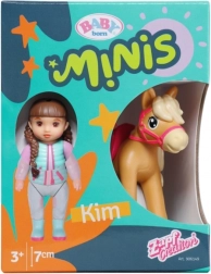 Découvrez la magie d’un monde miniature avec la BABY born Minis Kim et son cheval adoré. Kim porte une élégante tenue d’équitation avec un casque rose, et le cheval est équipé d’une selle et d’un filet assortis. La carotte est un accessoire ludique qui aide les enfants à inventer de nombreuses histoires et scènes de jeu.