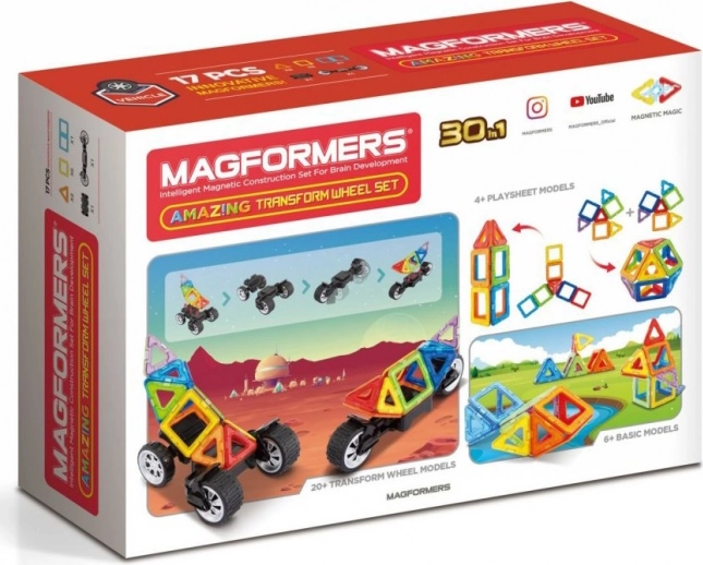 Amuse-toi avec le Transform Wheel Buggy de Magformers. Cette construction magnétique créative permet d’assembler une grande variété d’objets tridimensionnels à partir de polygones plastiques bidimensionnels. Magformers développe la motricité fine, stimule la créativité, apprend aux enfants les couleurs et les formes géométriques de base. Les dimensions des pièces et les formes soigneusement choisies garantissent une sécurité maximale du jouet. Le matériau utilisé pour la construction répond aux critères d’hygiène et de santé les plus stricts. Les pièces sont suffisamment grandes pour ne pas pouvoir être avalées et sont pratiquement incassables. Contenu de l’emballage: