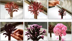 Après arrosage, de fins cristaux roses se forment en quelques heures, imitant une sakura en fleurs et transformant un simple petit arbre en une décoration spectaculaire.
