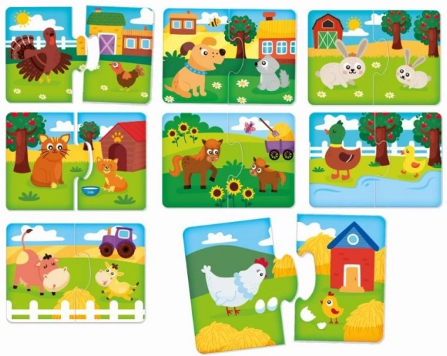 Des puzzles sur le thème de la ferme qui aident à développer la motricité fine et les compétences cognitives des enfants.