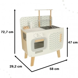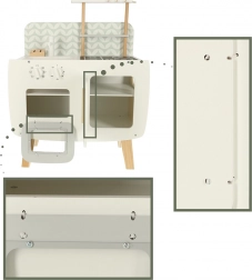 Le design de la cuisine est simple et aux couleurs pastel douces, ce qui la rend adaptée à toute chambre d'enfant comme élément central de jeu et comme accessoire esthétique.