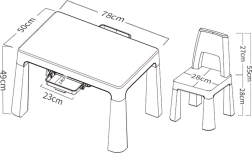La table en plastique avec chaises Neo offre un plastique durable et un look moderne qui s’intègre à tout intérieur pour enfants. Elle est équipée de deux petits tiroirs pratiques de 23 x 14 cm où les enfants peuvent ranger de petits objets.