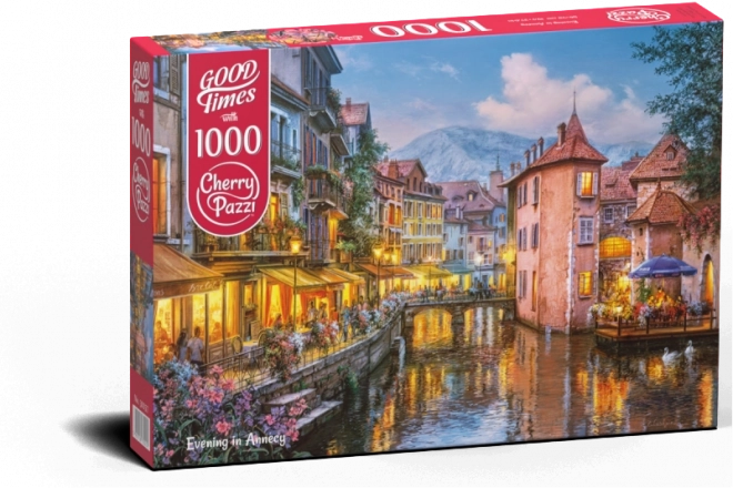 Cherry Pazzi puzzle Soir à Annecy, 1000 pièces. Dimensions une fois assemblé env. 70 × 50 cm. Motif captivant, excellente détente et cadeau idéal pour les amateurs de puzzles.