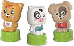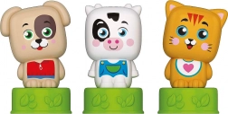 Trois figurines – chat, petite vache et chien – encouragent le jeu créatif, développent l’imagination et favorisent les premières associations logiques.