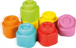 Les blocs Soft Clemmy sont fabriqués en matériau souple et non toxique, agréable au toucher, sûr à mordiller et 100 % lavable – adaptés aussi pour jouer dans l’eau.