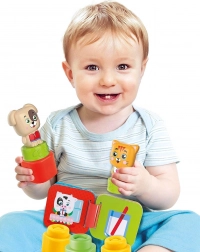 Ce set créatif CLEMENTONI nourrit la curiosité naturelle des enfants. Les blocs souples et élastiques se pressent facilement, s’empilent en toute sécurité et invitent au toucher grâce à leurs différentes textures de surface. Le livret illustré avec des animaux stimule la perception précoce, le langage et l’interaction parent-enfant.