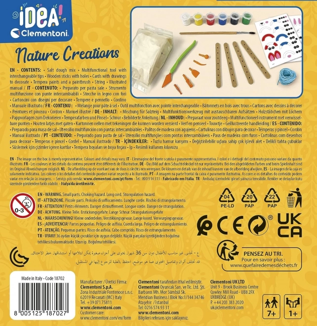 Ce coffret créatif CLEMENTONI IDEA Nature apporte tout ce dont les enfants ont besoin pour réaliser de belles décorations en pâte à sel. Modelez, découpez, torsadez, peignez et décorez – la seule limite est votre imagination. Les créations finies peuvent décorer la chambre des enfants ou faire de jolis cadeaux.
