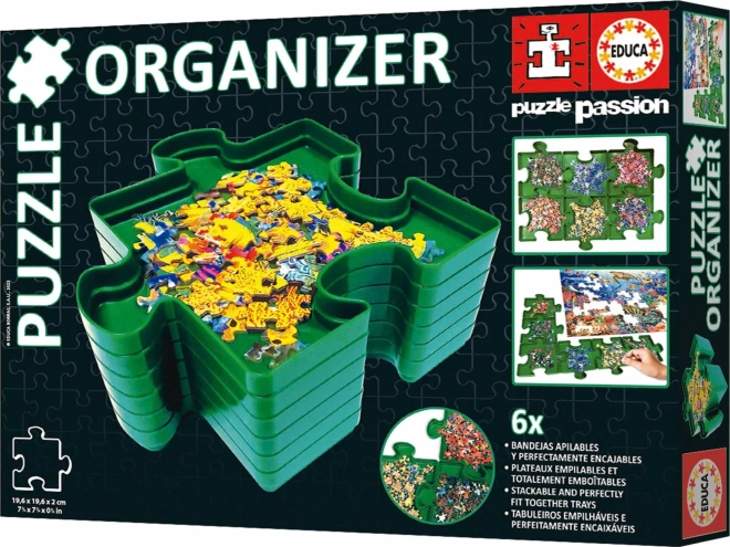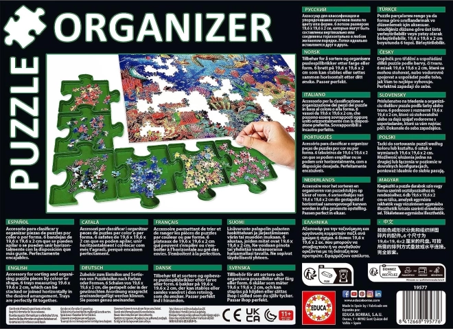 Simplifiez l’assemblage de vos puzzles avec l’organiseur EDUCA. Grâce aux six coupelles pratiques en forme de pièces, vous pouvez trier clairement les pièces par couleur, forme ou motif et ainsi accélérer la progression. Les bacs s’emboîtent parfaitement, de sorte que tout reste à sa place.