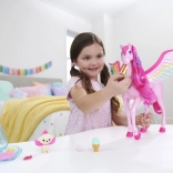 Élevez-vous sur les ailes de l'imagination avec le pégase rose de Barbie ! Ce pégase magique offre des fonctions lumineuses et sonores, accompagnées d'un petit chien magique et de doux accessoires.