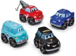 - Ensemble complet de 4 petites voitures – dépanneuse, pompiers, police et voiture de « voleur »