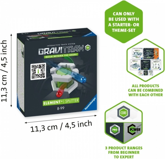 Le set est entièrement compatible avec tous les coffrets GraviTrax et GraviTrax PRO et enrichit parfaitement votre set de démarrage. Créez des combinaisons infinies et stimulez la créativité, la pensée logique et la patience lors de la construction de circuits complexes.
