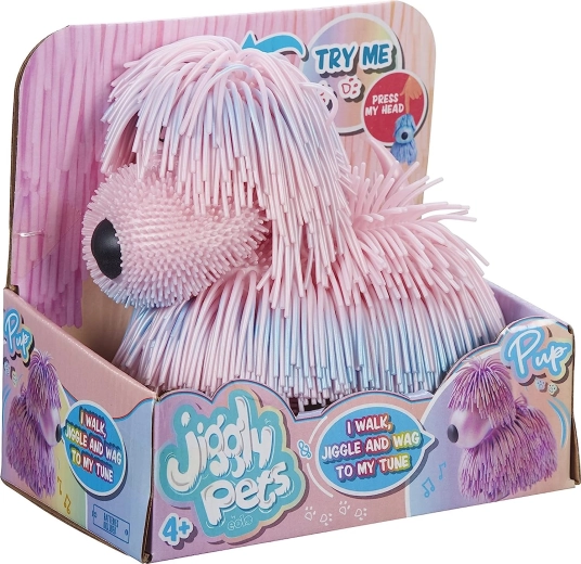 Découvrez l'adorable compagnon JIGGLY PETS qui se met à danser et à aboyer d'une simple pression sur le bouton ! Ce chiot nacré aux couleurs rose et bleu sait aboyer, marcher, hocher la tête et se trémousser avec son corps et sa queue au rythme des mélodies. Des piles de démonstration sont également incluses, pour s'amuser immédiatement.