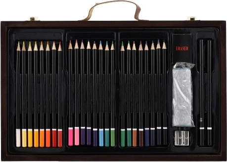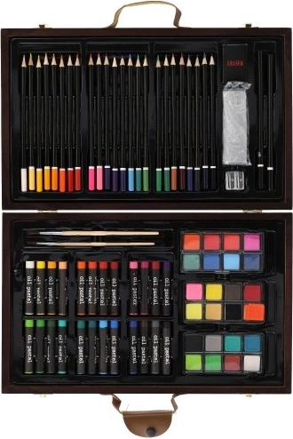 La mallette en bois pleine de couleurs et d'accessoires est le compagnon parfait pour les jeunes créateurs. Elle contient tout ce dont vous avez besoin pour peindre et dessiner, le tout dans un emballage élégant et facilement transportable :