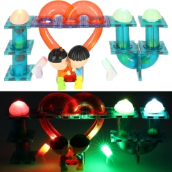 Le mouvement des billes active la lumière et, combiné aux pièces éclairées, crée un show lumineux captivant qui motive les enfants à construire et expérimenter davantage.