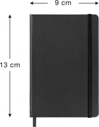 Des couvertures rigides protègent le contenu au quotidien et l’élastique garde le carnet bien fermé. La poche arrière pour cartes de visite et petits objets ajoute une dose d’ordre et de confort d’organisation.