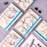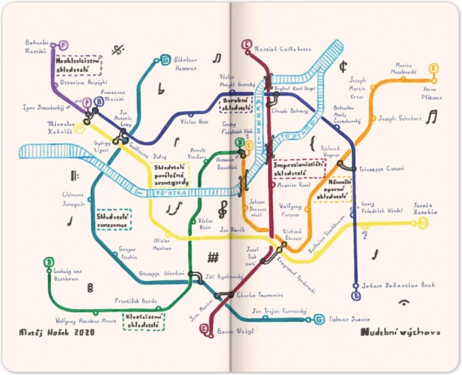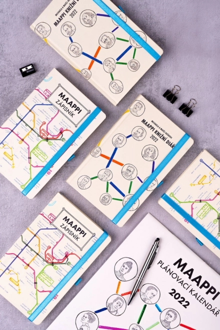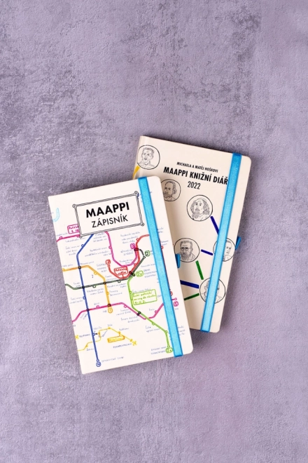 Maappi est un projet caritatif dont le principal visage est Matěj Hošek, dix-sept ans, qui vit depuis l’enfance avec une forme sévère du syndrome d’Asperger. Ses parents ne savaient pas longtemps comment l’aider, jusqu’au jour où ils lui ont mis entre les mains le plan des transports publics de Prague. Depuis, Matěj dessine ses propres plans uniques de réseaux de métro. Les meilleures œuvres de ce jeune designer se trouvent sur les pages de ce carnet, dont l’achat contribue au financement de projets améliorant la vie des personnes en situation de handicap.