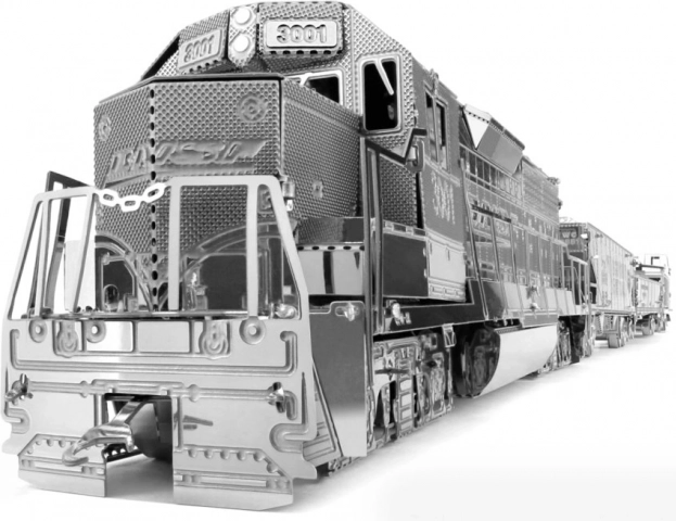 Chaque pièce est découpée et gravée avec précision pour reproduire fidèlement la locomotive et les wagons – le résultat est un modèle métallique saisissant.