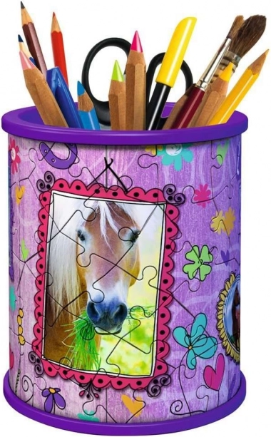 Découvrez un puzzle 3D ludique qui se transforme, une fois assemblé, en porte-stylos pratique pour crayons, pinceaux ou maquillage. Les pièces en plastique de haute qualité, spécialement courbées de RAVENSBURGER, s’emboîtent avec précision et garantissent une structure solide sans colle. Le motif cheval ravira tous les amoureux des animaux et ajoutera du style au bureau.
