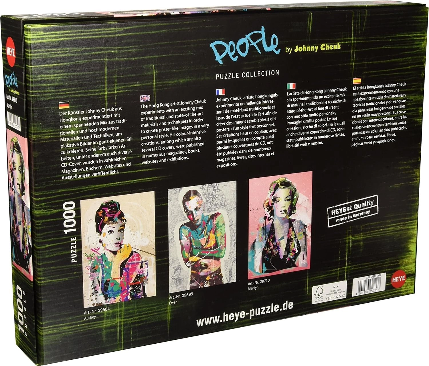 Partez pour un voyage de découverte artistique avec HEYE Puzzle Marilyn. Ce puzzle somptueux de la collection Personnes (People) présente l’œuvre du graphiste et illustrateur Johnny Cheuk de Hong Kong, connu pour sa création intensément colorée et singulière. Une fois assemblé, le puzzle mesure environ 50 x 70 cm, offrant une œuvre imposante, empreinte d’unicité et d’attrait esthétique.