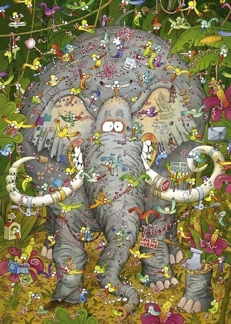 Profitez d’une détente créative avec le puzzle Heye Vie d’éléphant 1000 pièces. L’artiste apprécié Marino Degano a insufflé au motif un humour enjoué et une multitude de petits détails qui vous divertiront à chaque nouveau regard. Grâce au poster fourni, l’assemblage est clair et confortable.