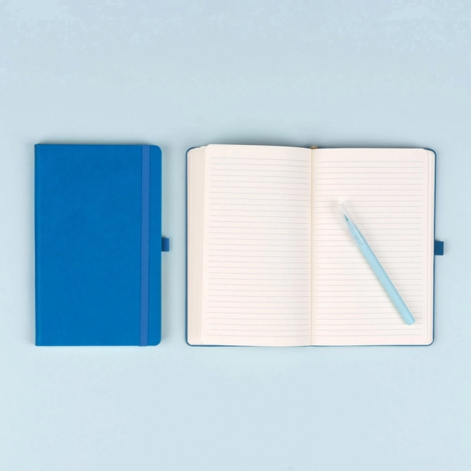 Carnet ligné bleu 13 × 21 cm à reliure rigide avec boucle pour stylo