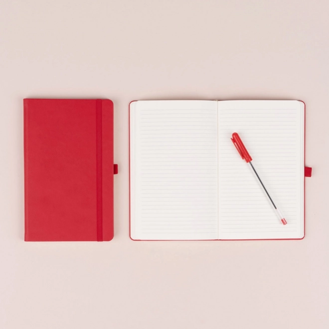 Élégant carnet ligné de couleur rouge classique, doté d’une reliure rigide de type livre, d’un élastique, d’un passant pour stylo et d’un marque-page en tissu. Sa surface à la texture plus marquée est idéale pour le marquage à chaud d’un logo. Les lignes de 6 mm sur un papier jaune de qualité assurent une écriture confortable à la maison, au bureau comme en déplacement.