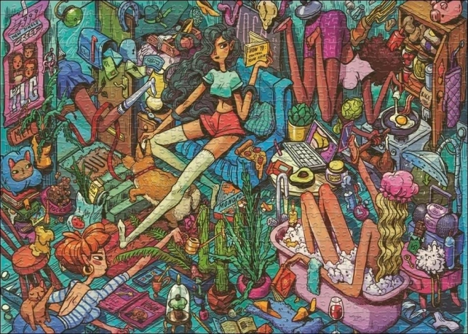 Plongez dans un monde imaginaire avec ce puzzle exceptionnel de la célèbre caricaturiste Marija Tiurina. La boîte triangulaire est non seulement esthétiquement remarquable, mais aussi pratique pour le rangement. Les dimensions du puzzle assemblé sont d’environ 70 x 50 cm, offrant une superbe vue sur l’illustration détaillée.