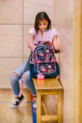 Sac à dos scolaire Flamingo adapté à partir de la 3e année de l’école primaire et également pour le collège. Le sac a été testé avec succès par l’ITC Zlín.
