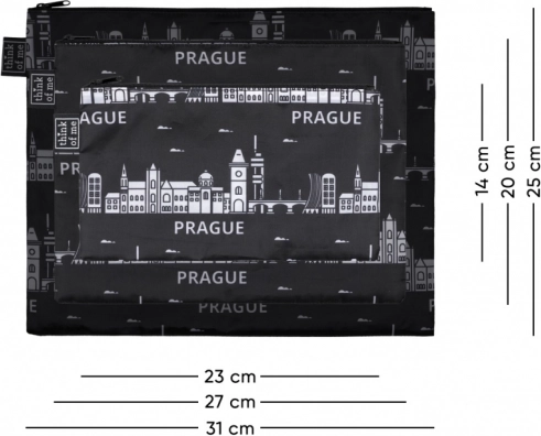 Fini le chaos dans la valise ou le sac. Le set de pochettes aux tailles MINI, MIDI et MAXI assure une séparation claire des cosmétiques, du linge et des accessoires électroniques. Le tissu résistant, la fermeture éclair de qualité et le motif pragois iconique en font le compagnon idéal pour les voyages, le travail et l’école.