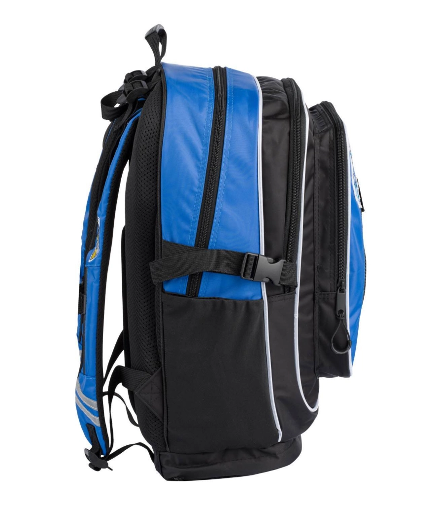 Trois compartiments séparés à fermeture indépendante avec organiseur intérieur assurent un rangement clair des manuels, cahiers et petits objets. On retrouve une poche matelassée pour ordinateur portable 15" ou tablette, un organiseur frontal avec passant et mousqueton amovible pour clés, des poches latérales élastiques pour une gourde et une poche secrète renforcée au fond du sac. Le matériau imperméable résistant, les éléments réfléchissants et le faible poids font de ce sac un choix idéal pour l’école comme pour les loisirs.