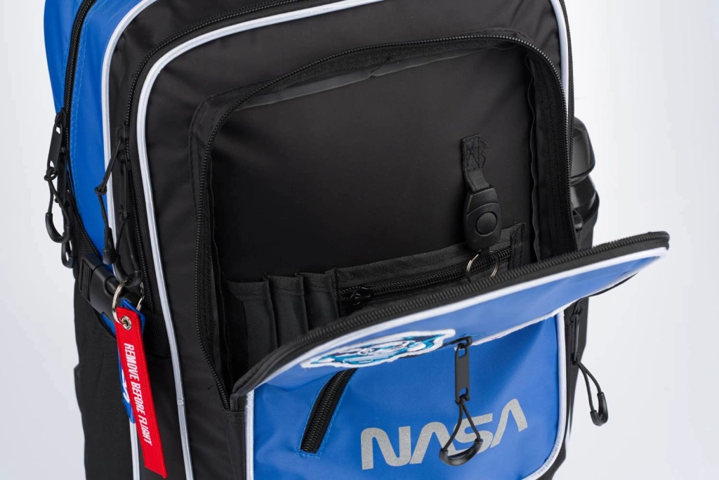 Le sac à dos scolaire BAAGL Cubic NASA allie ergonomie, organisation spacieuse et fabrication durable. Il offre trois compartiments avec un organiseur et une poche pour ordinateur portable 15", des bretelles entièrement réglables pour un ajustement parfait, un matériau imperméable, des éléments réfléchissants pour la sécurité et des détails pratiques, dont une poche inférieure secrète et un porte-clés REMOVE BEFORE FLIGHT.